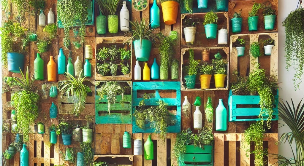 Você pode usar diversos materiais recicláveis para criar seu jardim vertical. Aqui estão algumas sugestões: